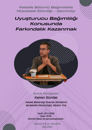 This online seminar, organized by the Philosophy Department, focuses on raising awareness about drug addiction. The invited speaker, Kenan Gündal, will discuss addiction from both a social and preventative perspective, aiming to inform participants and promote a more conscious and responsible approach to this critical issue.